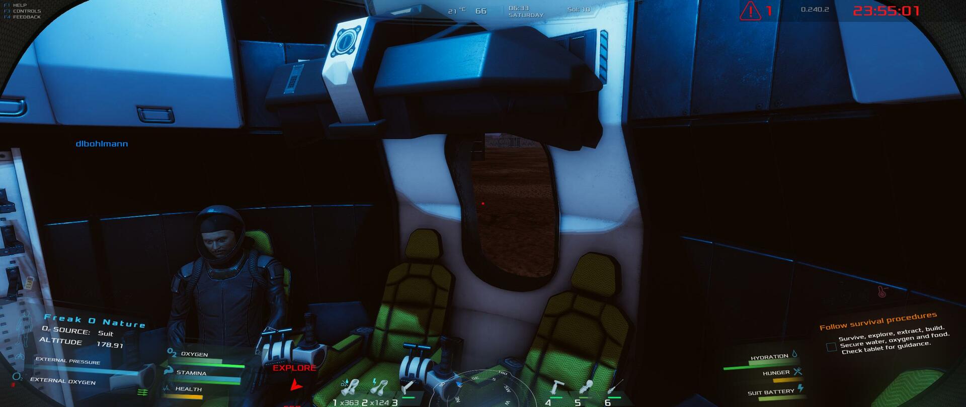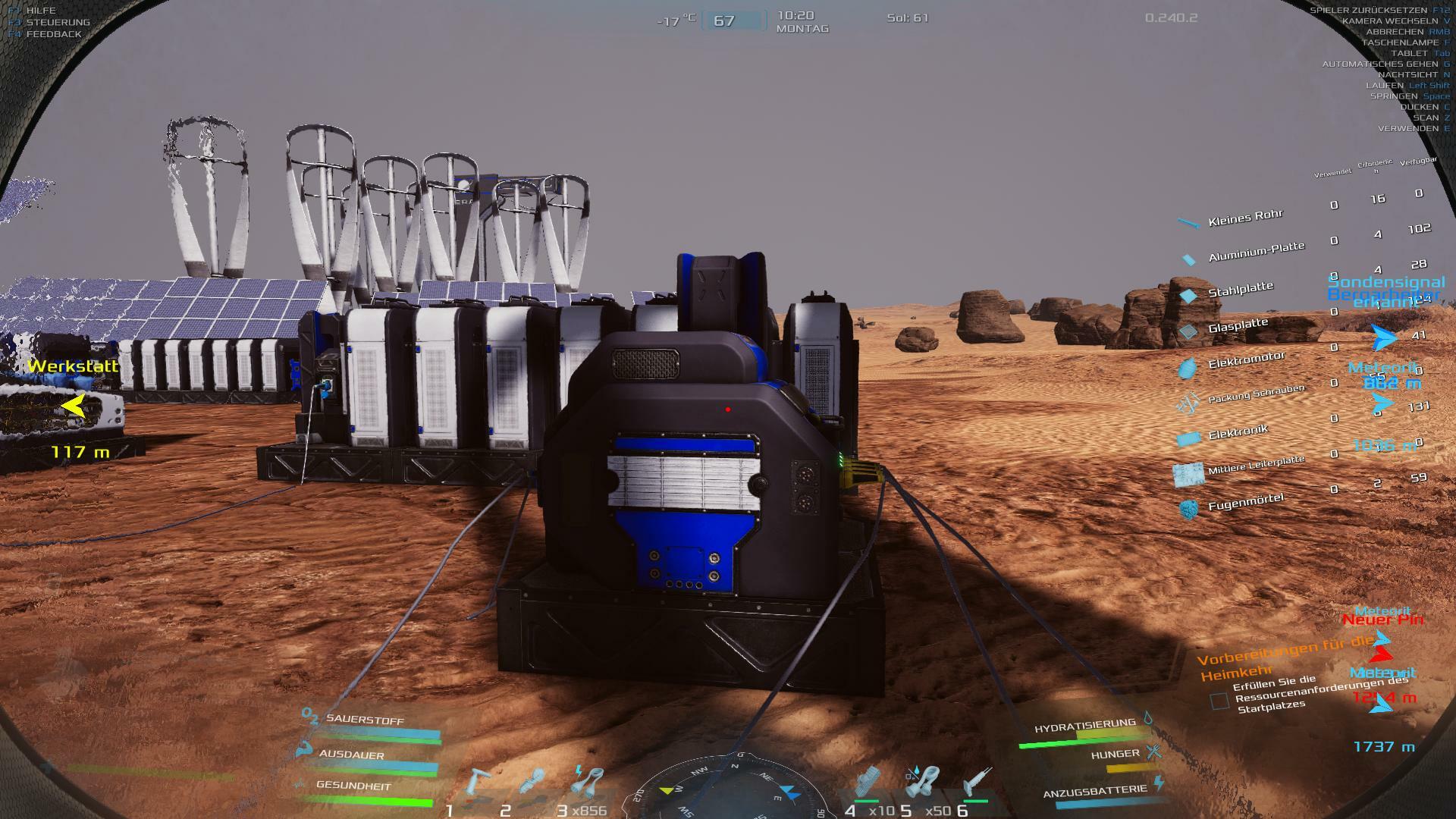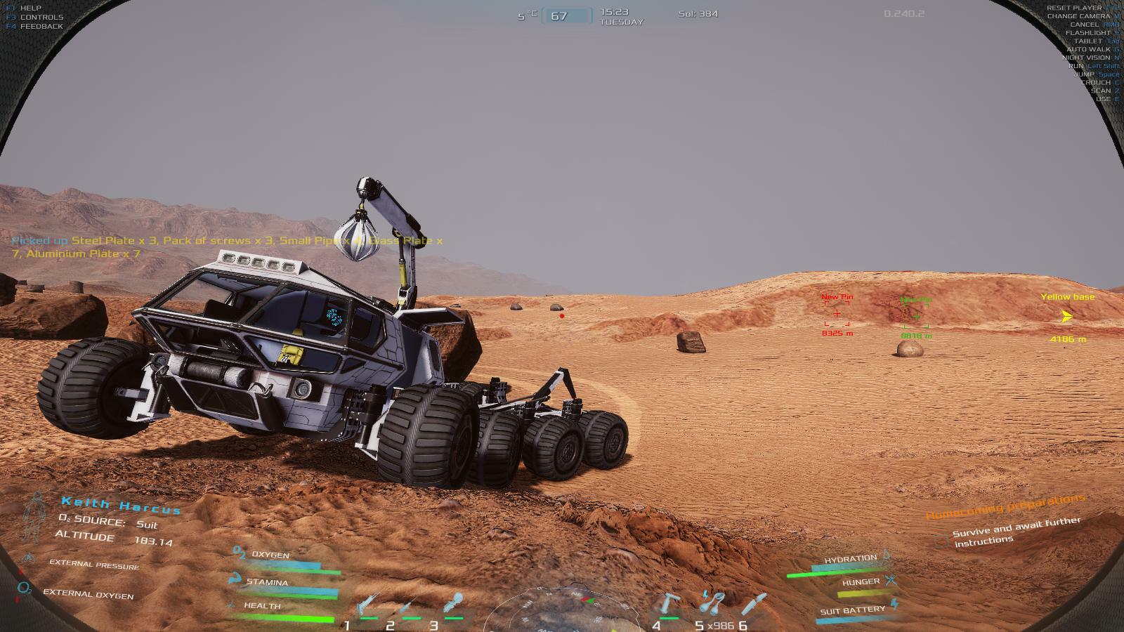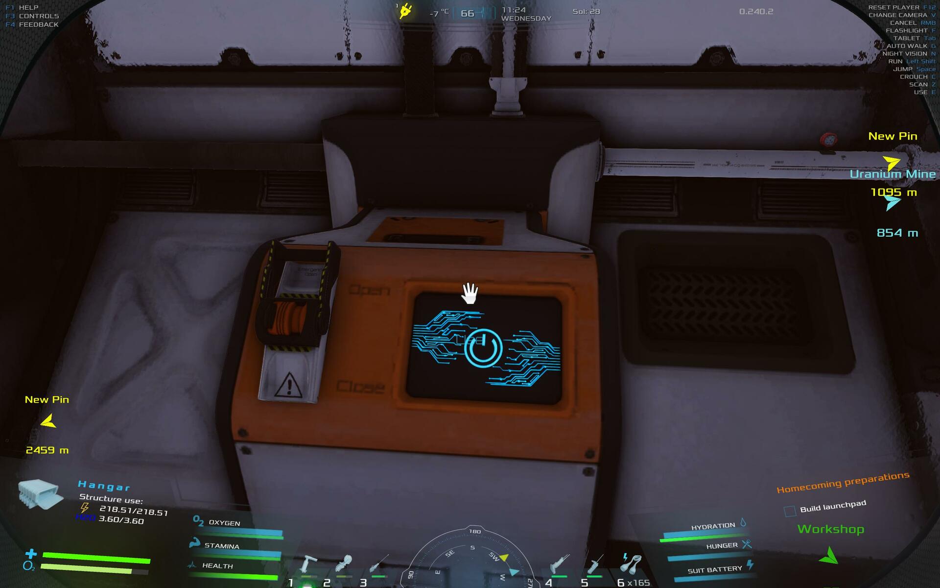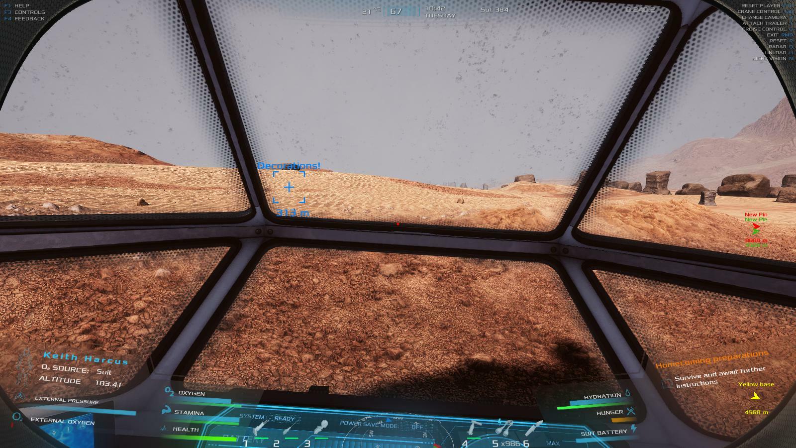 | been playing for a while now and i just had the idea that you should have a way to replenish your oxygen content inside the hanger as well as power. so you can park your rover in the hanger and then pulg it in to charge as well as refill the oxygen. Love the Game but the chemistry tech tree and chemlab and chemistry workbench are needed to make it complete. | 120.25 | 2025-11-09 06:24:51 | |||