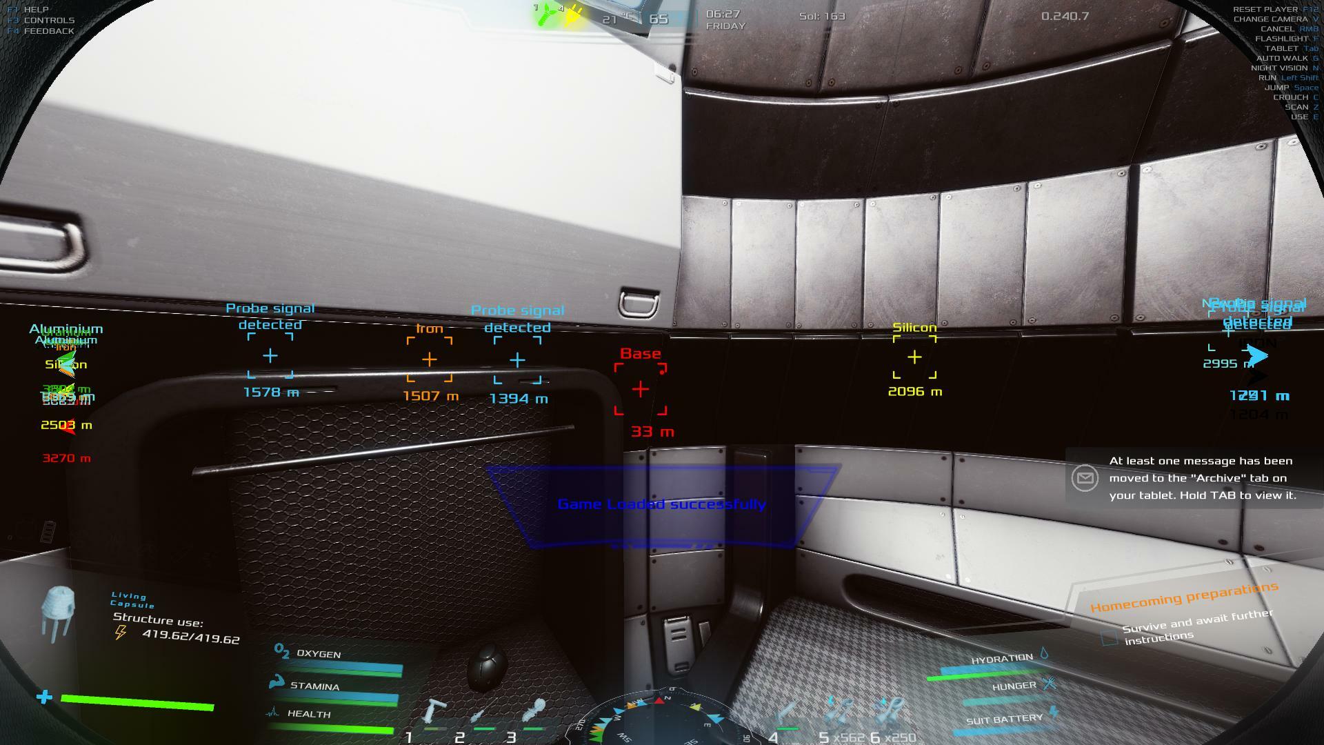 | I also identified instances of a lack of synchronization between the oxygen and H2O gauges on the interface and the gauges on the tablet's inventory screen. | 0 | 2026-01-05 03:16:47 | |||