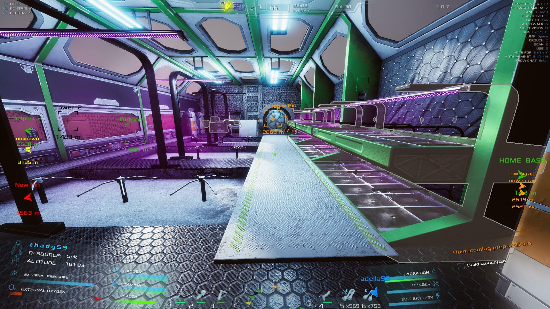 | Ideas: 1- The printer could have slots to place boxes of flash drives, rocks, etc., or it could be able to access the boxes in the inventory. 2- The drill could have an additional level where mining is complete without breaking the rocks into several pieces. 3- It could be possible to select bases for teleportation between them. 4- There could be other planets. 5- The life or survival capsule could have slots to increase the capacity for generating oxygen, water, and energy, accessible from inside it. 6- There could be a (passive) connector to connect various grids, both for energy and for water and gases. 7- There could be a CO2 tank for storage. 8- Congratulations on the game, congratulations on the updates and corrections, continue to expand this universe. | 15.00 | 2026-02-13 13:58:20 | |||