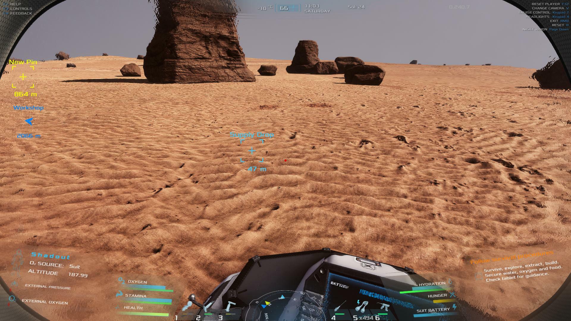 | So is it a bug or by design that I can't use the remote controller in side my base? If it's a bug, is there a fix planned? If it's by design, why? What would the point be of ONLY being able to control the rover remotely from outside the safety of the hab/base? If anything, it would make more sense from a standpoint of realism that the "remote controller" would be a buildable station within one of the habs (much like one of the workbenches) where the player would operate if from a workstation with a monitor, much the same way our real-world astronauts remotely piloted resupply pods launched from Earth to dock with the ISS. All-in-all, still happy with the game, just needs more added to it and the current systems still need some tuning. This is just what ails me at the moment. Will try to offer a more complete review/feedback/suggestions at a later time, perhaps after the Jan 30 update drops and we'll see what was fixed/improved/added. | 30.03 | 2026-01-12 01:03:36 | |||