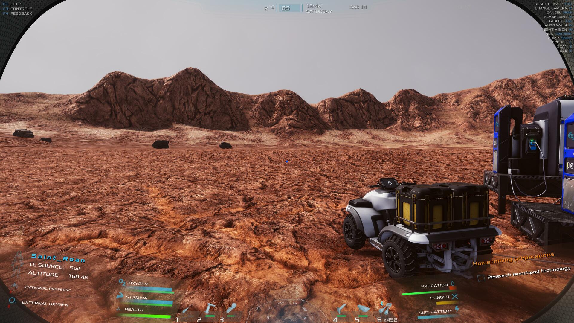| here's a thought, when we are charging our battery or oxygen or water via the mouse click button say on the rover. So in this case we walk not water, but oxygen and electricity. can we not just have a plug that when we click on it with attach our suit and then we don't have to keep holding the mouse button or the letter E to charge the battery or the oxygen from the rover or any other outlet would be great. Thank you very much. | 71.93 | 2026-02-20 15:41:26 | |||