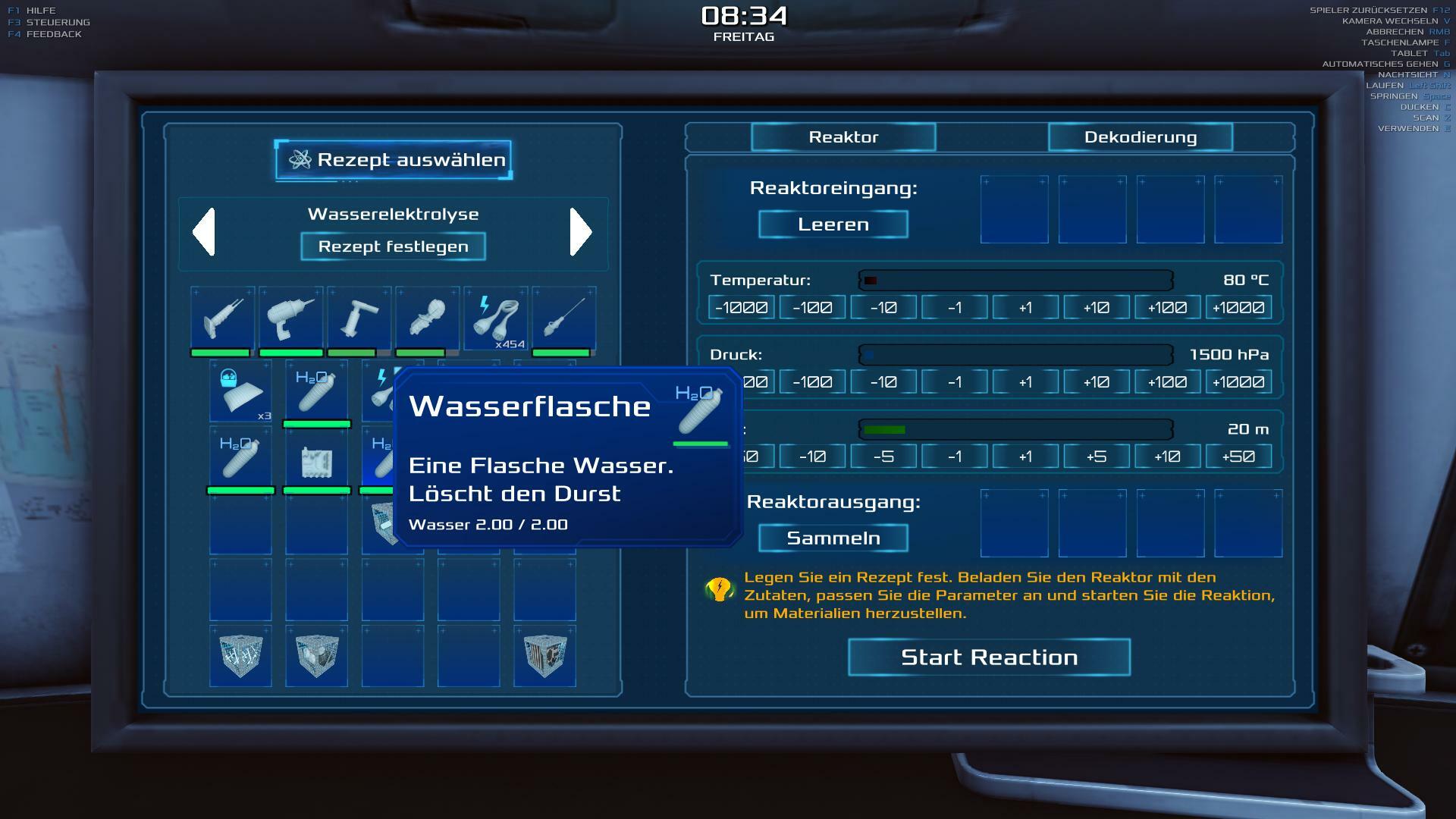 | Trying to make the Water recipe on the chemestry station. in German: Wasserelektrolyse. I have 5 bottles of H2O the recipe needs 4, but the system says that it cant find the components for the reaction. even manually entering the correct paramters and the bottles doesnt work# # | 60.07 | 2026-02-09 09:38:27 | |||