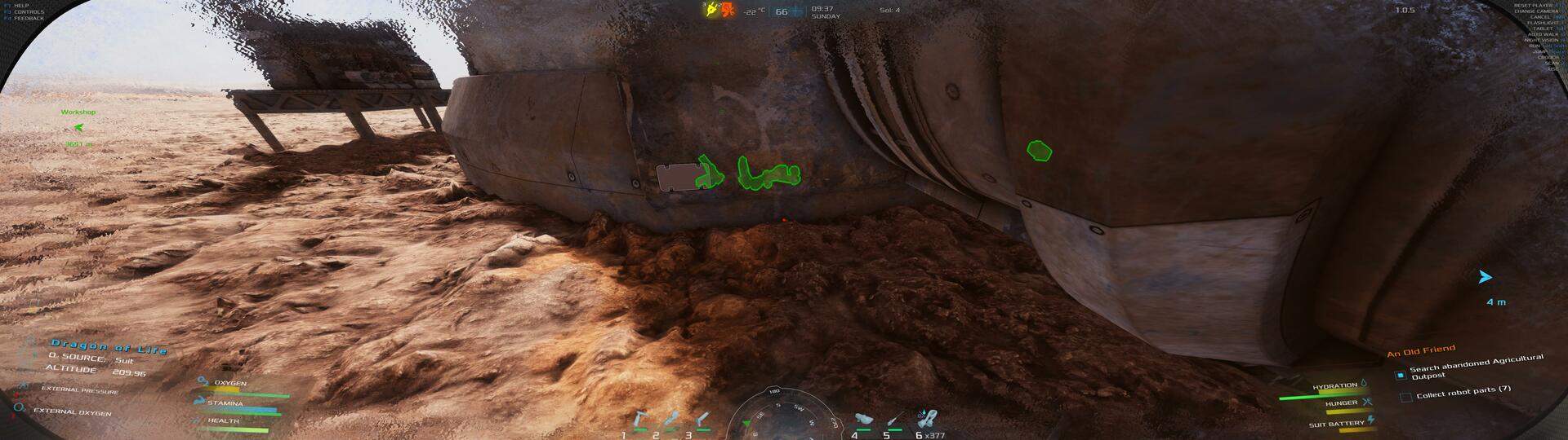 | I was using the food processor for the first time. I put 1 potatoe in each slot to maximize the output. I pressed the process button, then re-supplied each slot again with 1 potatoe to prepare for the next batch. I pressed escape to retrieve the 1st batch I made, and then was suddenly outside of the map. It appears as though I was dropped down below my base. I was streaming on twitch when this happened. so I will try to clip it for you. Also, putting on my helmet returned be to the workshop. However, when I changed camera view using 'V' I was invisible. I think I took the helmet off, and then put it on again. Now only the helmet is visible - the rest of my character is invisible. I'm going to quick save and attempt to load back in to the game. | 60.00 | 2026-02-03 23:44:38 | |||
