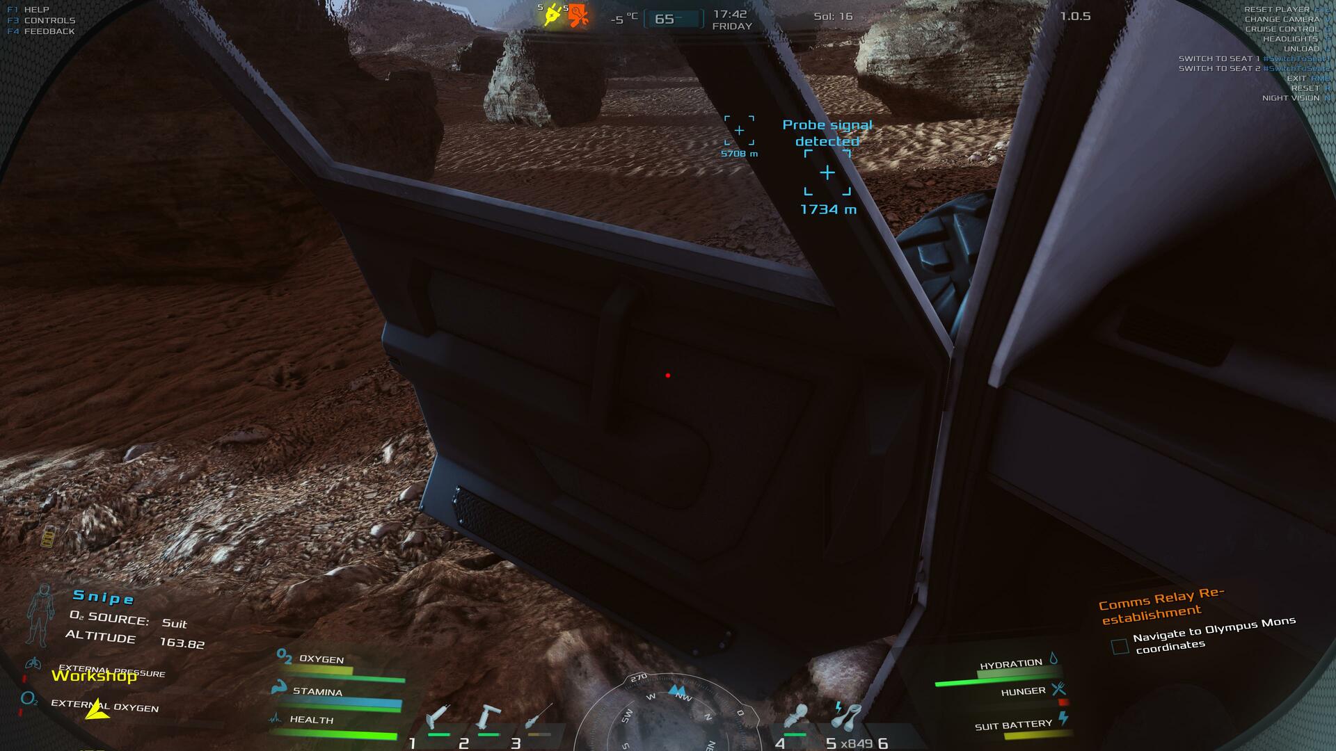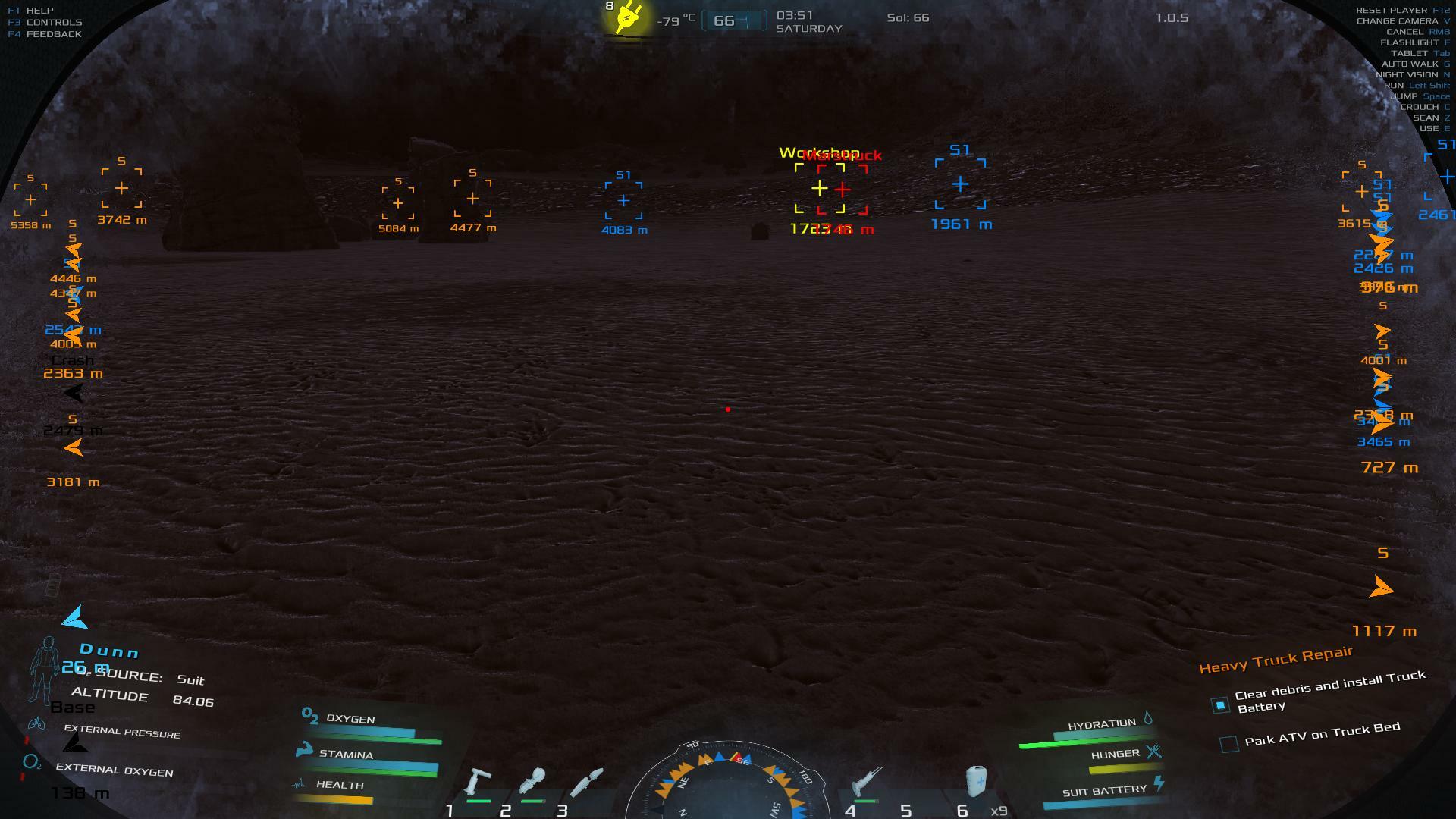| After loading a save where door of mars truck was open in campaign mission construct the habitat the doors wont open or close. I can still enter the truck and drive it but the door wont close when entering it and it still has the outside temp in the hud intsead of the temp the truck has. None of the other doors will work as well. The hood opens and closes I can still access the inventory and I can remove and insert the battery. Also I can not unload the atv the tailgate does not open and the unload option also does not do anything. Sadly I can no longer advance in the game because of this and I tried reloading this multiple times also tried loading earlier saves which also had the same thing. | 60.06 | 2026-02-04 02:57:53 | |||